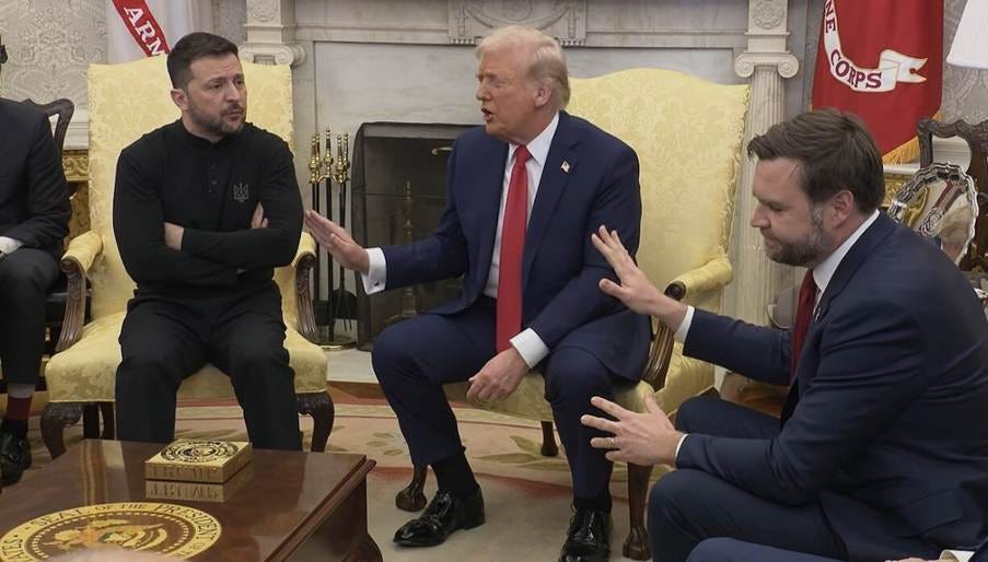 I walked into an ambush. February 28th, 2025. President Volodymyr Zelenskyy meets President Trump and Vice President JD Vance in the Oval Office at the White House.