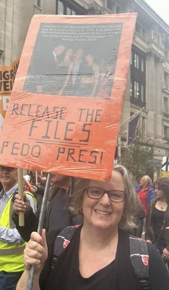But I am cautious. I am reminded of a man I met at the Stop Trump rally last October in London. Not all anti Trump protestors are created equal, and this man took exception to my placard that called for the release of the Epstein files.
